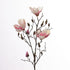 Deze elegante zijden magnolia tak straalt rust en luxe uit. De grote bloemen in crèmekleur met een subtiele zachtroze tint geven de tak een verfijnde, romantische uitstraling. De combinatie van open bloemen en fluweelachtige knoppen zorgt voor een natuurlijke en realistische look.